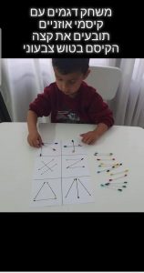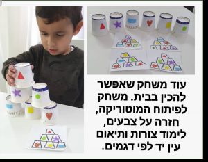 - לעשות משימה תוך כדי- לדוגמה חלקי פאזל בצד אחד ולוח הפאזל בצד השני.