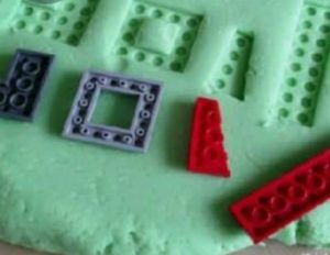 הטבעות לגו על בצק, פלסטלינה, חול קינטי –