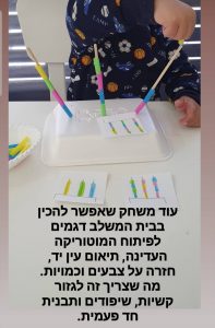 - לגוון ברמת הקושי, בצבע החפץ, בגובה (מעל ומתחת גובה העיניים של הילד/ה)