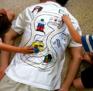 מסלולי מכוניות על גב החולצה-