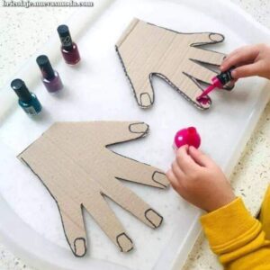 צביעת לק על ציפורניים מקרטון-